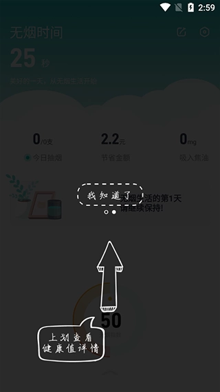 3、动态健康指数时时刻刻提醒你戒烟的好处。