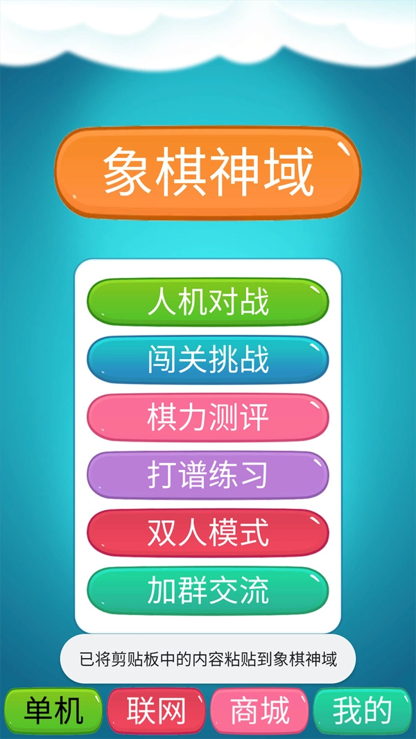 象棋神域是一款趣味休闲游戏,以象棋为题材,玩法经典。游戏设有多种模式,练习模式助你提升棋力,残局模式供你挑战自我,双人模式支持在同一台手机上进行双人对决,闯关模式则能让你与AI智能一较高下。如此丰富多样的模式,等你前来体验。感兴趣的话,赶快试试吧!