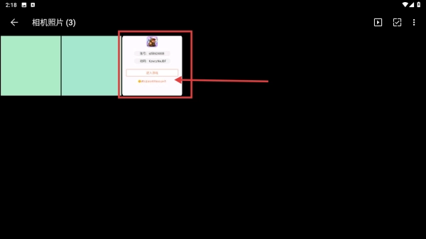 2、在相机照片文件夹中,点击目标游戏账号信息图片,进入图片详情页。