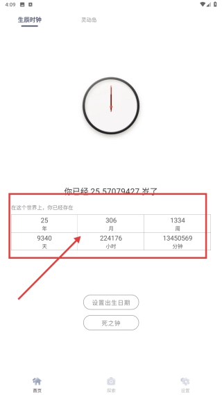 3、查看生命时长统计数据,了解已存活的年、月、周、天等信息。