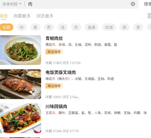 2. 输入关键字来查找食谱