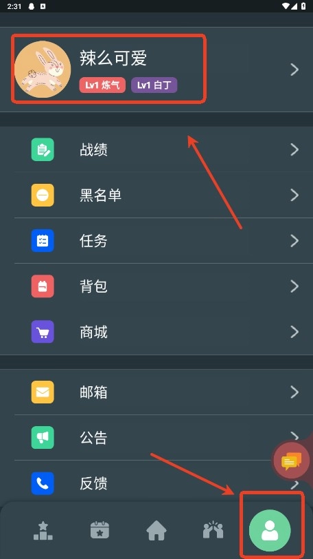1.进入软件点击右下角人头像, 以及上方账户信息。