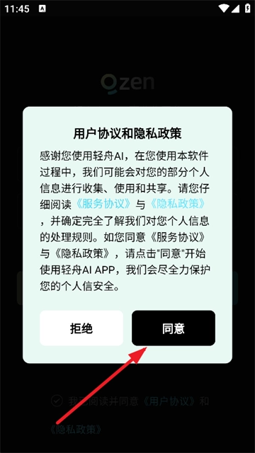 2、进入软件后,同意软件政策;