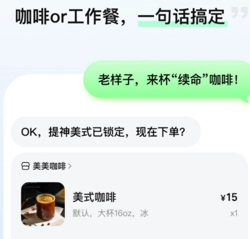 日常消费:点外卖、订咖啡、选早餐、推荐餐厅等高频需求。