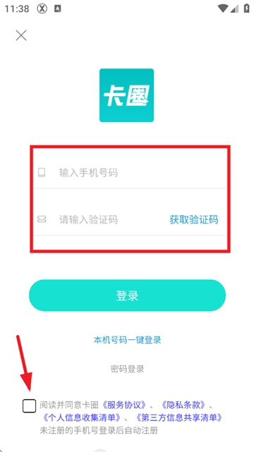 2、输入手机号和验证码,勾选用户协议和隐私政策即可