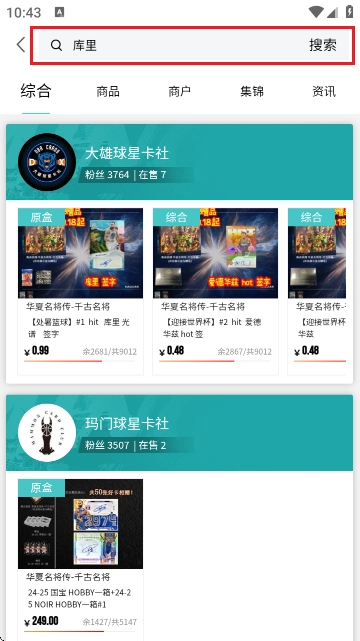 5、这里面的搜索功能尤为出色,能够助力用户更为精准且迅速地寻找到自己心仪的球队、球员、卡种以及商户。就像【库里】。