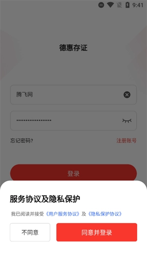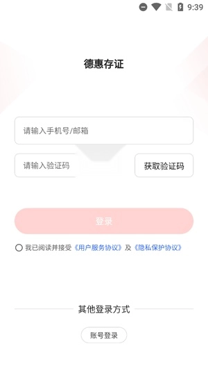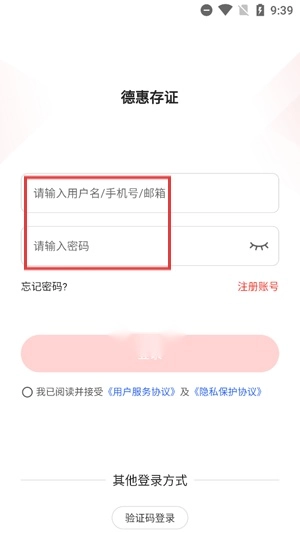 请打开德惠存证App,于登录界面处输入您的账号与密码,然后点击登录按钮。