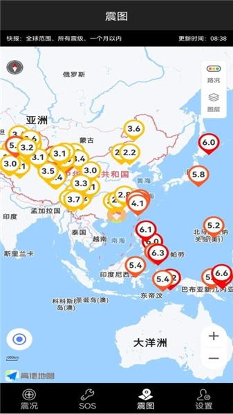 通过列表和地图的形式展示全球范围内实时地震讯息,可以筛选地震范围、地震时间和地震震级。