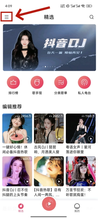1、打开小米音乐,进入软件首界面,点击如图所示的标识