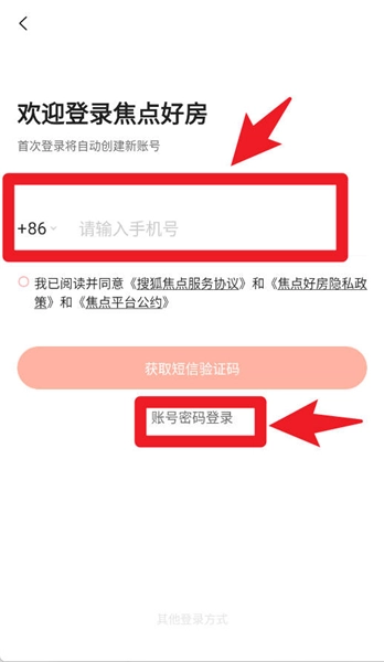 1、进入登录界面,你既可以输入手机号获取验证码进行登录,也能够选择通过账号密码的方式登录,从而快速进入系统。