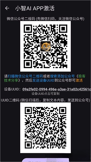 2. 留意软件内所提供的微信公众号,发送UUID来完成激活。