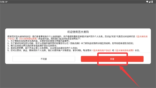 1、启动应用后,在用户协议弹窗中选择"同意"继续操作。