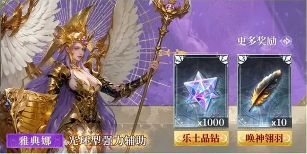 累计在线 1 小时,免费领光祷型强力辅助雅典娜及乐土晶钻、唤神翎羽;