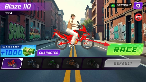 4、解锁摩托车、皮肤和疯狂的特技与其他人竞争,成为真正的后轮离地特技冠军简单的一键式操控。