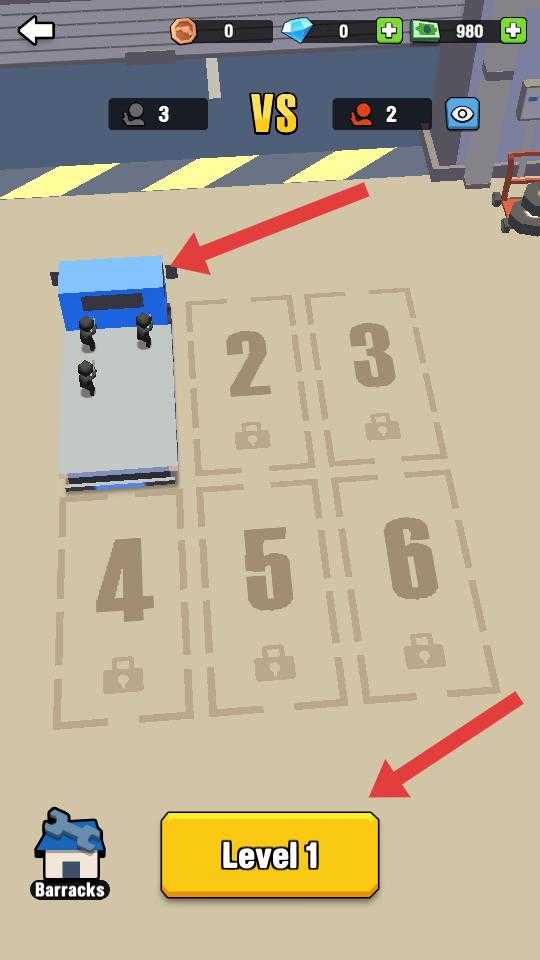 2、于对战准备界面,能够看到双方人员数量等相关信息,点击“Level1”,即可进入第一关的对战场景,进而准备展开战斗。