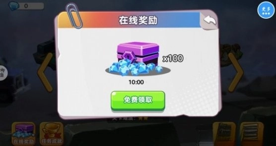 3.你还可以点击在线奖励,去获得宝箱里的100钻石奖励,可以解锁武器。