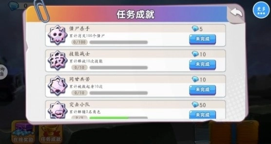 4.设置了很多的任务,有僵尸杀手、技能战士、同甘共苦和突击小队。