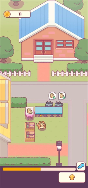 6、点击下方黄色箭头,在此处能够收获一只猫猫,它能帮你制作三明治。
