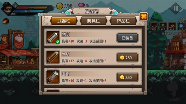 5、玩家通过摧毁物品或击败怪物能够获取金币,这些金币能够在新手村用于购买各类武器装备。