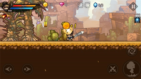 4、关卡选定后便正式开启,开启后,左侧用于控制左右方向,右侧设有跳跃、普攻以及技能按键。